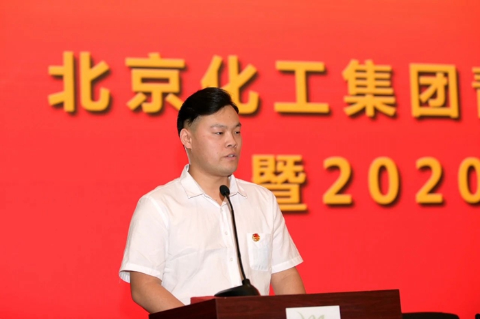 华腾拓展公司团总支书记吴莹芳、华腾化工团总支书记张世亮作经验交流发言,职防院团委副书记胡剑舞向全集团团员青年发出题为《不忘初心跟党走,青春奋斗正当时》的青年建功"十四五"的倡议。