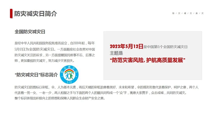 在第15个“5·12全国防灾减灾日”到来之际,爱体育网页版登录界面按照党中央、国务院、北京市委市政府部署的工作要求,以“防范灾害风险,护航高质量发展”为主题,深入开展防灾减灾宣传,以增强全系统干部职工安全忧患意识,提高防灾减灾及应对能力。