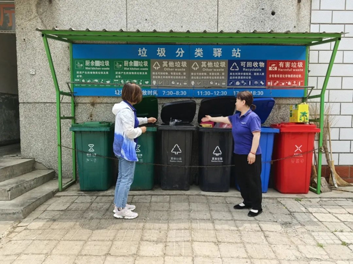 为优化桶前值守工作机制。公司设备动力部牵头在车间范围内对生活垃圾分类驿站及垃圾周转区内进行检查,严格做好生活垃圾驿站的日常管理以及相关设备设施的维保工作,实现驿站干净、整洁、无异味。