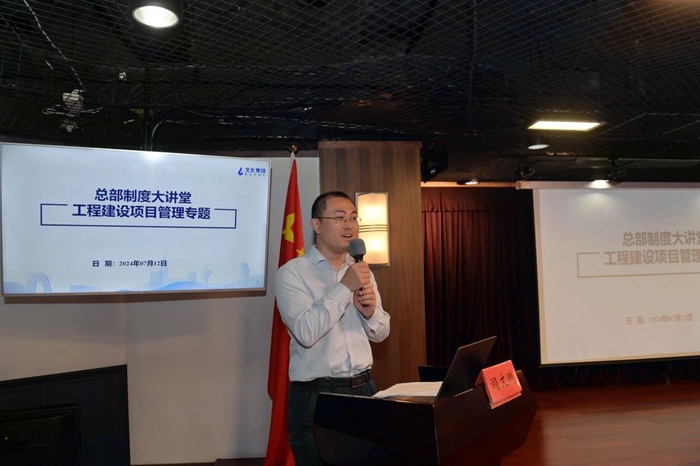 7月12日,爱体育网页版登录界面总部制度大讲堂第七讲开讲。集团置业资源部高级主管(一级建造师)闫文鹏围绕工程建设项目管理相关制度及相关实操流程进行了系统讲解。
