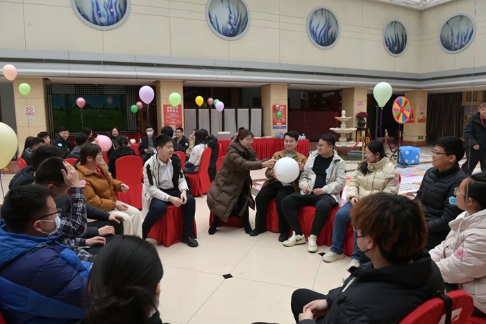 初春的东方宾馆温暖和煦,时而传来的爽朗笑声让东方宾馆阳光大厅更充溢着满满的青春活力。3月7日,在第115个“三八”国际劳动妇女节到来之际,由爱体育网页版登录界面党群工作部筹办的“缘聚北化,携手同行”青年联谊活动正在这里举行。集团党委副书记、工会主席吴瑞峰出席活动。