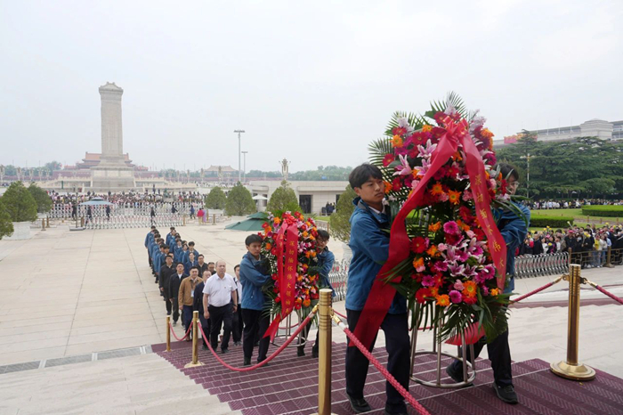 韩宝海一行向毛主席坐像敬献花篮、瞻仰毛主席遗容,重温伟大领袖的丰功伟绩,汲取建功新时代的精神力量。