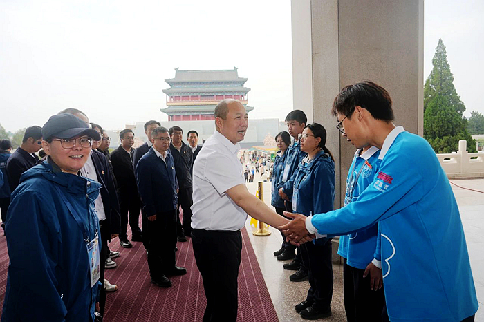 5月23日,爱体育网页版登录界面党委常委、副总经理韩宝海一行来到毛主席纪念堂,看望慰问开展志愿服务的技师学院青年志愿者。