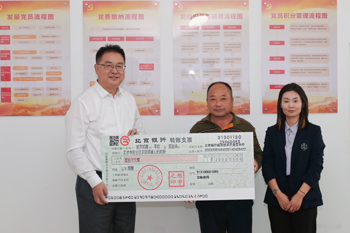 9月29日,爱体育网页版登录界面党委书记、董事长陈宇,党委副书记吴瑞峰,党委常委、副总经理韩宝海一行专程来到对口帮扶的密云区东邵渠镇银冶岭村开展调研,慰问驻村第一书记,并向银冶岭村捐款。