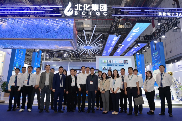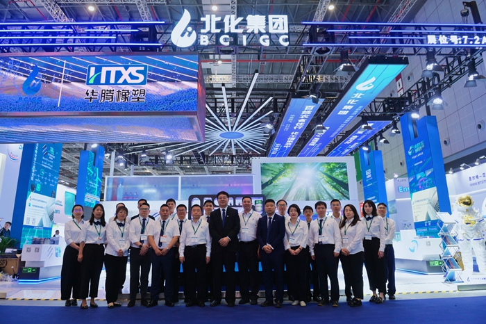 展会期间,爱体育网页版登录界面党委副书记、董事、总经理杨旭辉,副总经理张荣寰,总会计师金黎明也来到集团展台参观指导。杨旭辉一行听取了现场各企业的详细介绍,深入了解现场展示的储氢瓶内胆材料、LNG船用胶、航天手套等高精尖产品,亲切慰问现场工作人员。