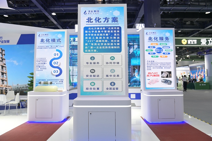 突出展现集团发挥主责主业优势,围绕首都“四个中心”功能建设,积极融入“五子”联动新格局取得的丰硕成果,是爱体育网页版登录界面此次参展的一大亮点。“三个北化”——“北化方案”“北化模式”“北化服务”展屏矗立其间,构筑安全管理全产业体系、发展生物医药大健康产业、服务首都产业链安全,成为集团全新战略方向和目标。