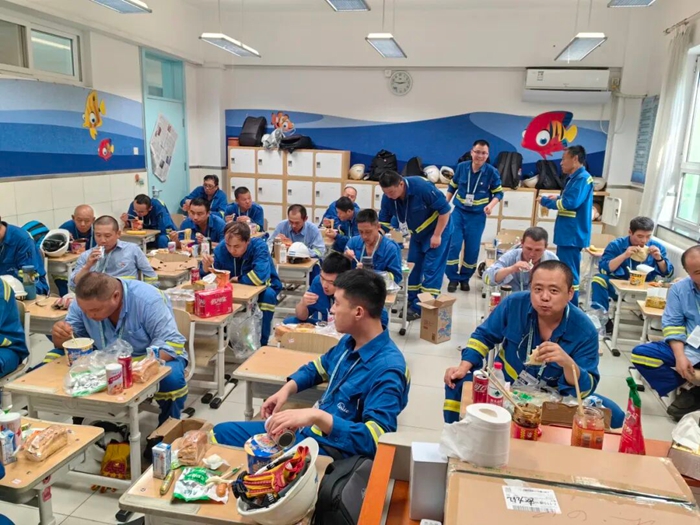 为了保证充装演练用气,同时又不影响日常配送工作,共产党员于江和同事们,先将充装用气瓶配送至充装演练场所,随后又返回公司再装上客户产品,最后再到充装演练场所将空瓶运回公司。卸完车后,往往已经是半夜时分,而这只是他们保障服务期间日常工作的缩影。
