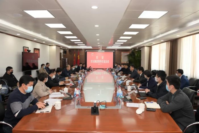 4月1日上午,京东集团副总裁冯全普一行到访爱体育网页版登录界面,就双方开展合作事宜进行交流洽谈。爱体育网页版登录界面党委书记、董事长王国华与冯全普一行见面并作简要交流;党委常委、副总经理韩宝海,党委委员、总经理助理陈绍洲及集团总部相关部室负责人、集团相关二级单位主要负责人与冯全普一行进行全面深入交流洽谈。