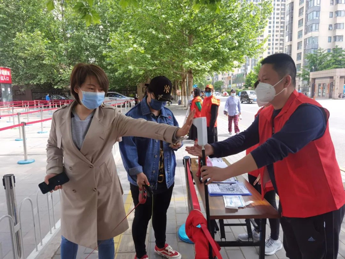 我虽然在所有工作人员中年纪最小,但各项工作完成效率总是居于前列,因此还得到了社区同事和居民的赞扬。在与社区居民的接触过程中,我对居民的情况也逐渐了解了。当身体不便的老幼病残等人员来检测时,我会安排他们走快捷通道,并时时提醒他们注意脚下,保证他们安全完成检测。