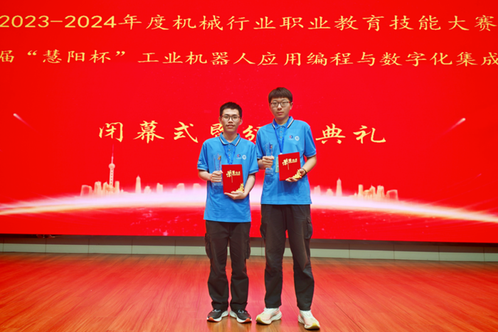 “慧阳杯”工业机器人应用编程与数字化集成应用赛项,由机械工业教育发展中心主办,属于国家级二类职业技能竟赛。赵晨晓和满海亮在技师学院老师的悉心指导下,凭借扎实的专业知识和出色的实践能力,经过两天紧张而激烈的角逐,在众多参赛选手中脱颖而出,最终取得佳绩。